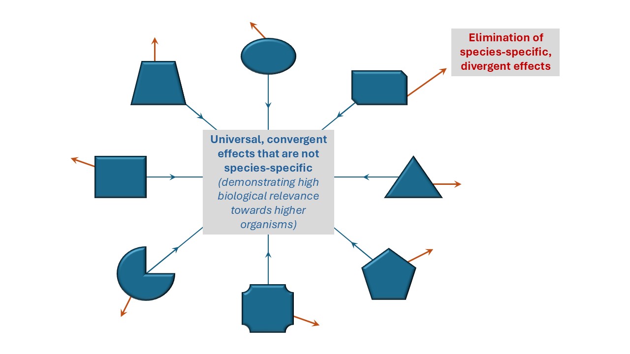 If you are looking for a fast, relevant, and cost-effective solution to assess the effects of any molecule, solution, extract, or treatment, the renaissance approach of Micro-InVivo® (MIV) offers an ideal and ethically preferable alternative. This innovative research platform provides unique capabilities that, to a significant extent, can substitute for the highly expensive and cumbersome vertebrate animal models (in vivo) as well as cell- and tissue culture systems (in vitro). In contrast to in vitro and some in vivo systems, the MIV is able to measure particulate, coagulation, flocculation, micellar, and colloidal active agents that are either insoluble or only slightly soluble in water.
